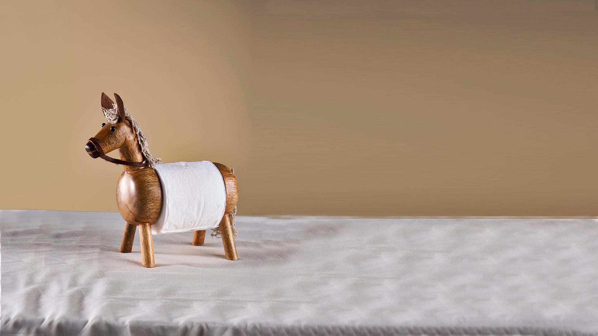 A perfect blend of craftsmanship and utility, this handcrafted toilet roll holder is a charming addition to your bathroom. Designed in the shape of a horse, it features detachable hind legs for effortless roll replacement, making it both functional and artistic.