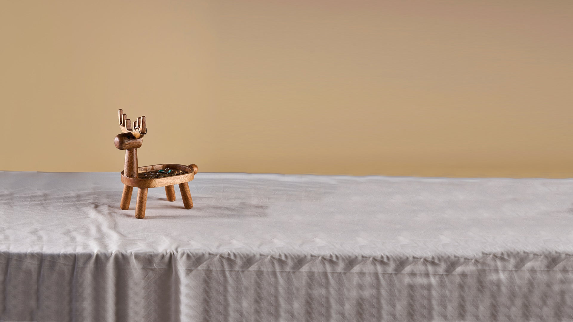 This handcrafted wooden jewelry holder combines elegance with functionality. Featuring a tray for your essential pieces and gracefully designed reindeer antlers to hold rings or delicate necklaces, it adds both charm and organization to your space.