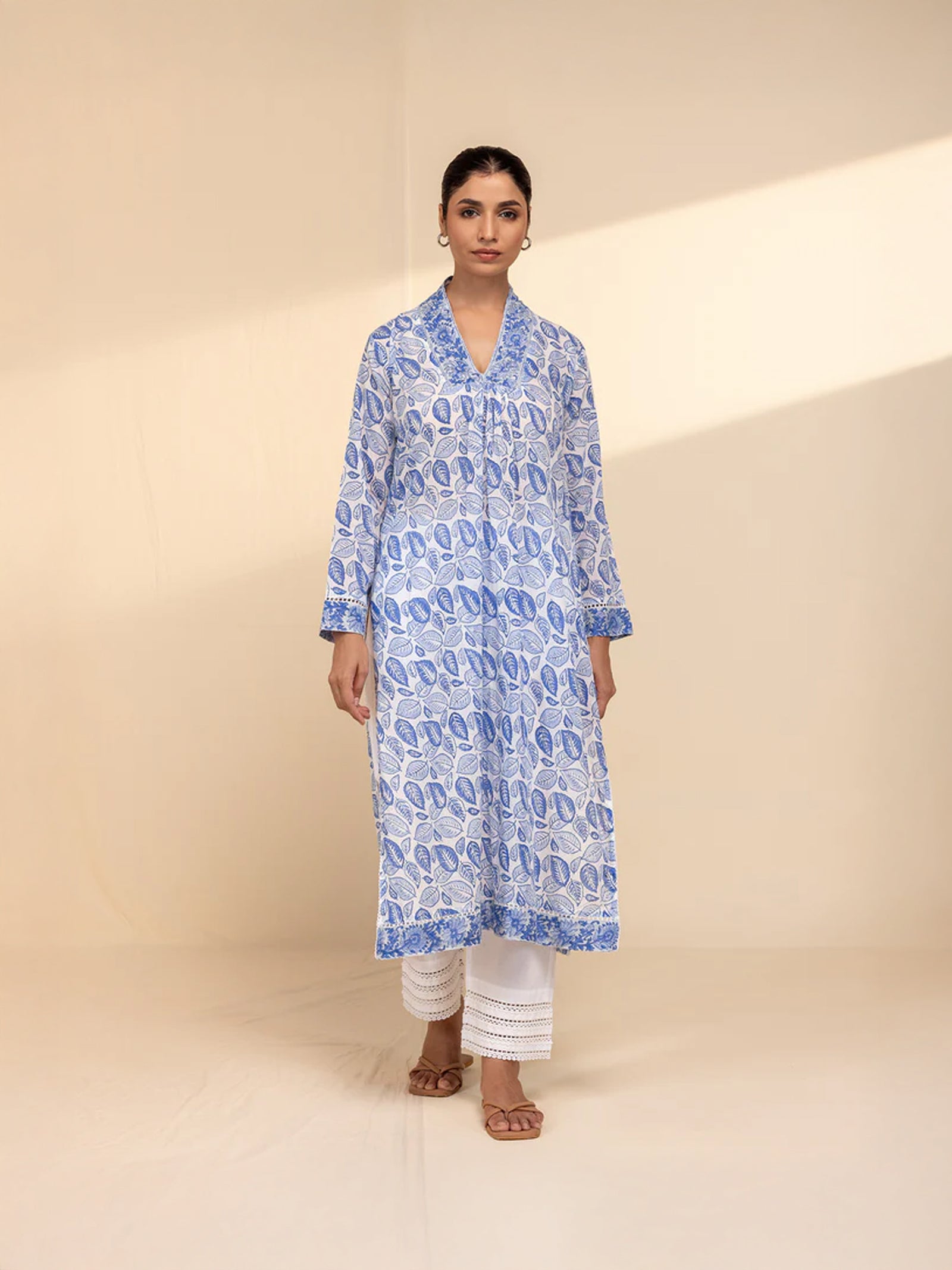This Kota Doria dupatta is elegantly finished with hand-printed borders and intricate crocheted lace running along all its edges.