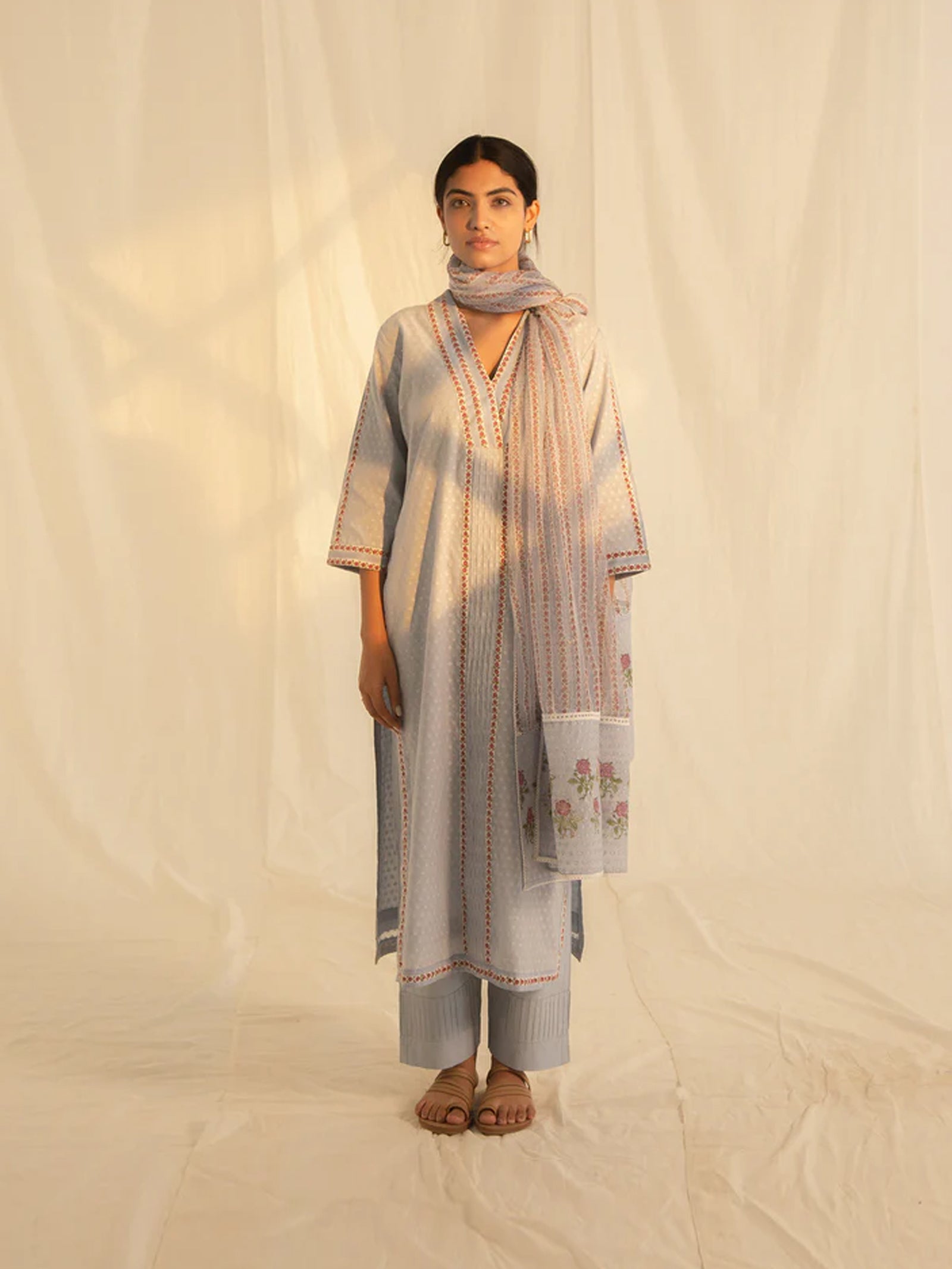 Crafted from soft cotton fabric, the Blue Roses Cotton Straight Pant offers a comfortable and breathable fit, perfect for everyday wear. These pants feature a semi-elasticated waistband with a drawstring for a customizable fit and practical pockets. Delicate pintuck Embellishment at the hem adds a refined touch.
