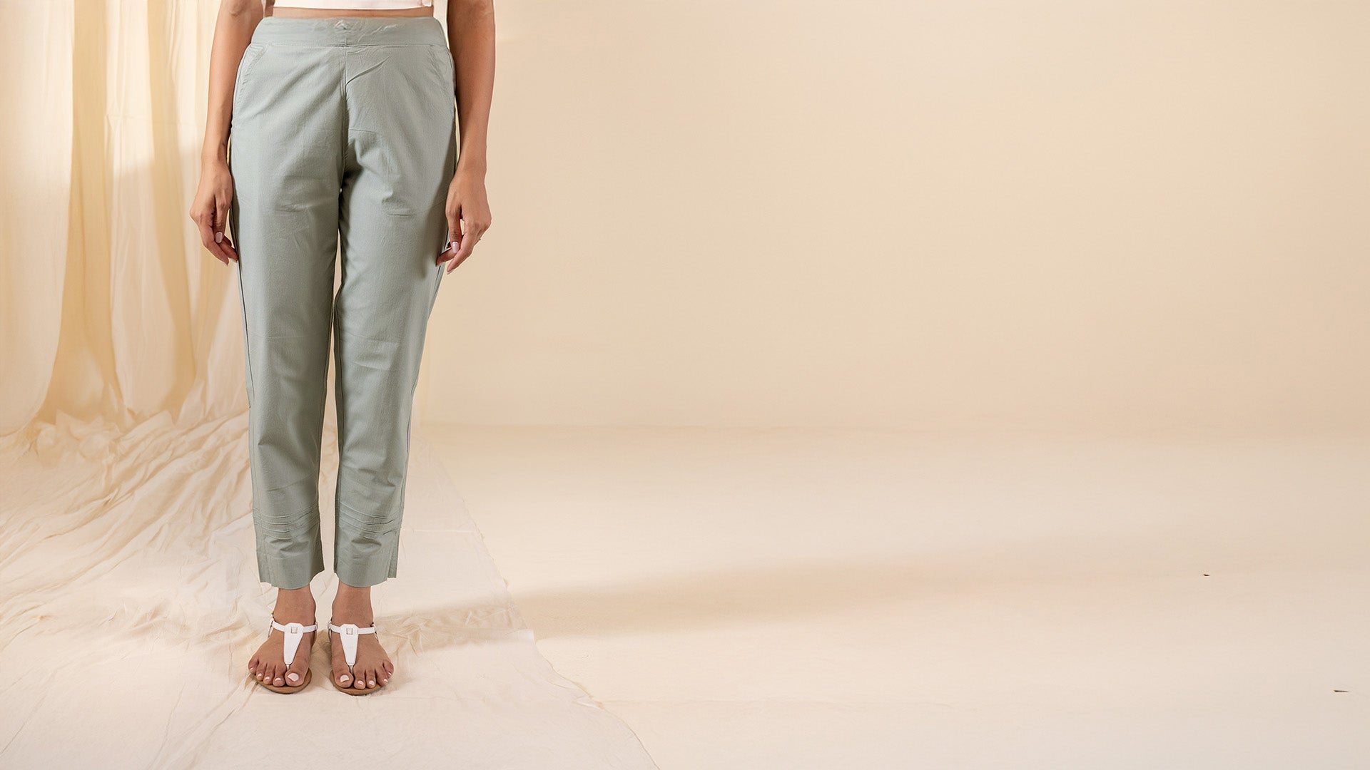 These straight cotton pants in a versatile grey hue feature refined pintuck detailing and subtle side slits at the hem for ease and style. Designed with two side pockets and a semi-elasticised waistband with a drawstring, they offer both functionality and comfort in a clean, tailored silhouette.