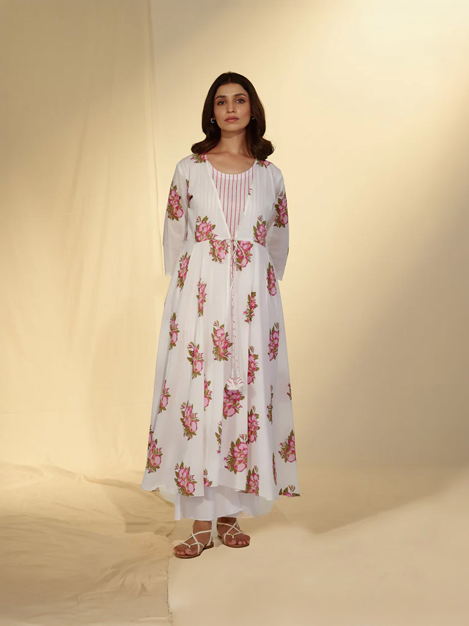 This lightweight Kota Doria cotton dupatta features an intricate hand-printed floral design in vibrant hues. Embellished with delicate lace along the edges, it adds an elegant and feminine touch, perfect for pairing with both traditional and contemporary outfits.