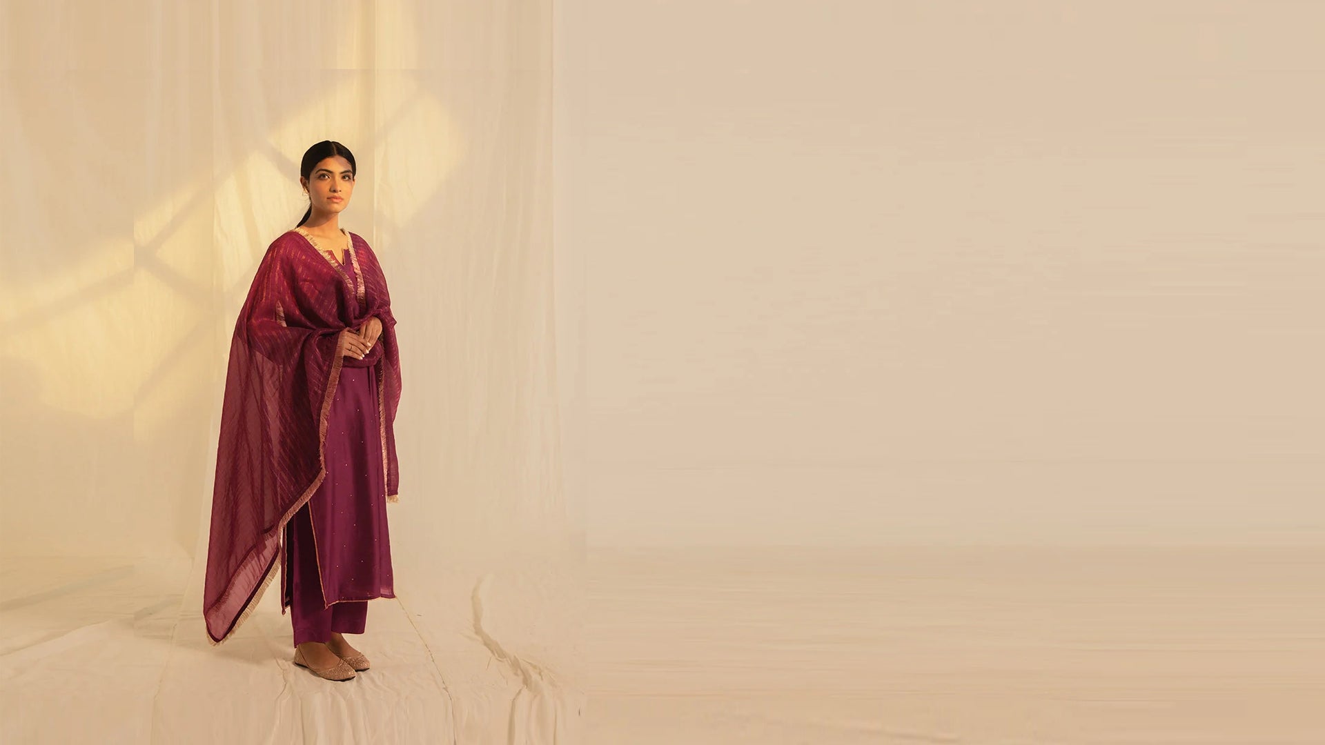 Festive Maroon Chanderi Kurta