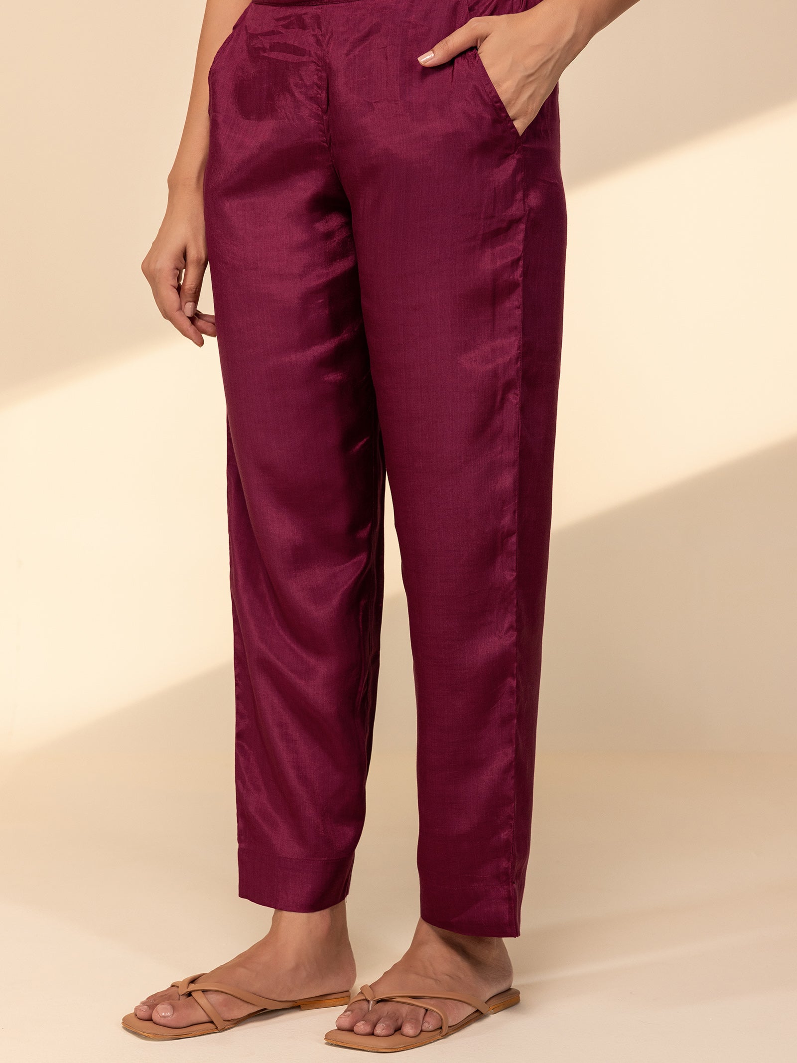 This shimmering festive dupatta is crafted from lurex fabric, hand-dyed in a rich maroon shade with an all-over golden stripes pattern. Finished with a delicate frilly golden gota lace along the edges, it exudes elegance and charm.