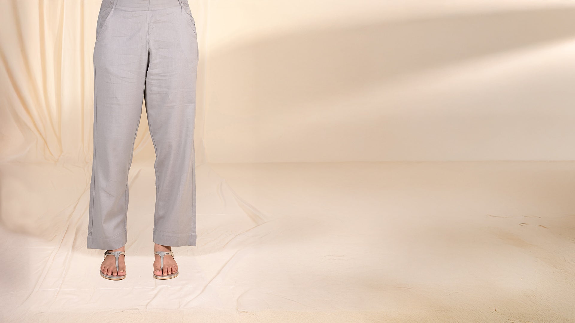 These grey twill cotton straight pants feature a semi-elasticated drawstring waist and two side pockets. Comfortable and versatile, they’re ideal for everyday wear.