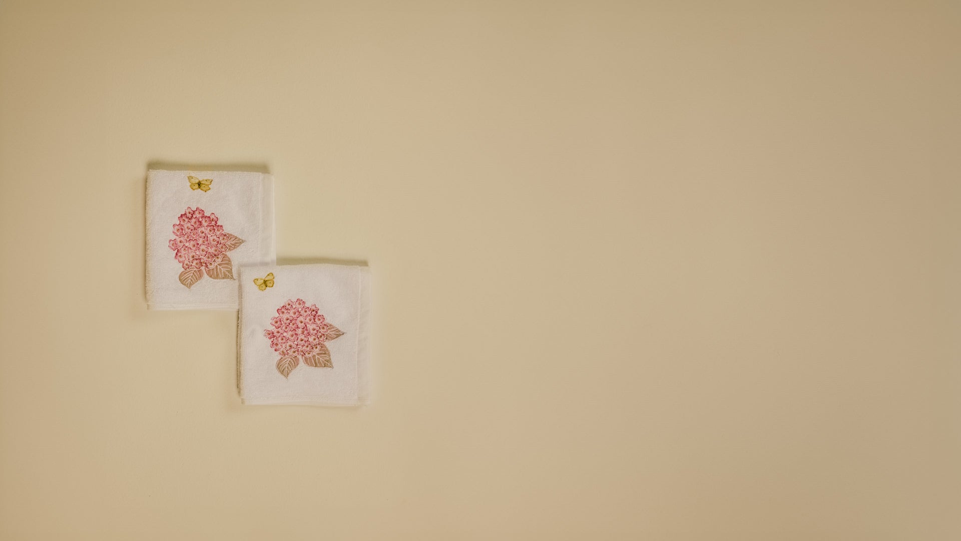 These face towels are adorned with vibrant heliotrope flower motifs, hand-block printed and appliquéd for a beautiful finish. Made from 100% natural cotton, they offer softness and absorbency, making them a perfect addition to your daily routine.