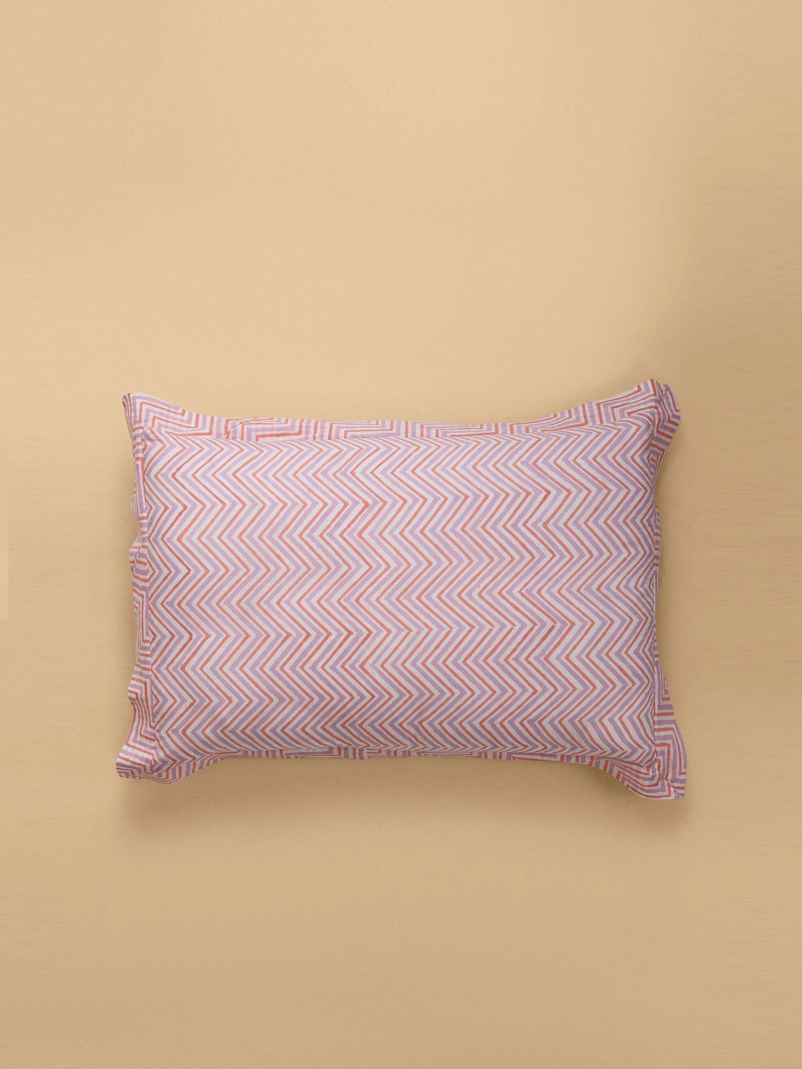 This hand block printed bedcover draws inspiration from classic Mughal motifs and contemporary geometry. A beautifully arranged paisley and floral jaal pattern, framed within rhythmic arch shapes, reflects the elegance of traditional Indian architecture. In shades of dark peach, orange, and lavender on a soft ivory base, it adds warmth, richness, and an artisanal touch to your space.