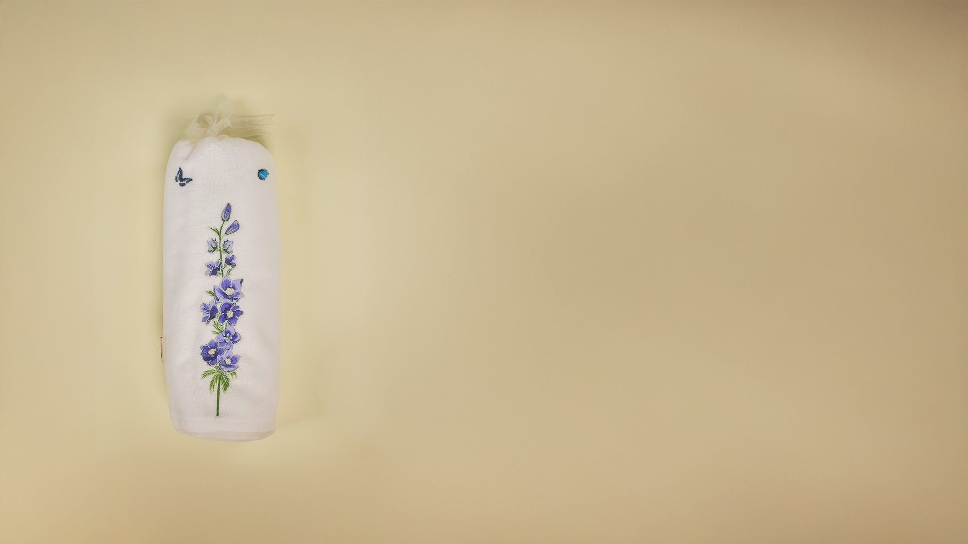 The Larkspur Bath Towel brings a vibrant touch to your bathroom with its beautifully digitally printed and appliqué larkspur flower motifs. Made from 100% natural cotton, this towel offers superior softness and absorbency, making it both a functional and decorative addition to your space.
