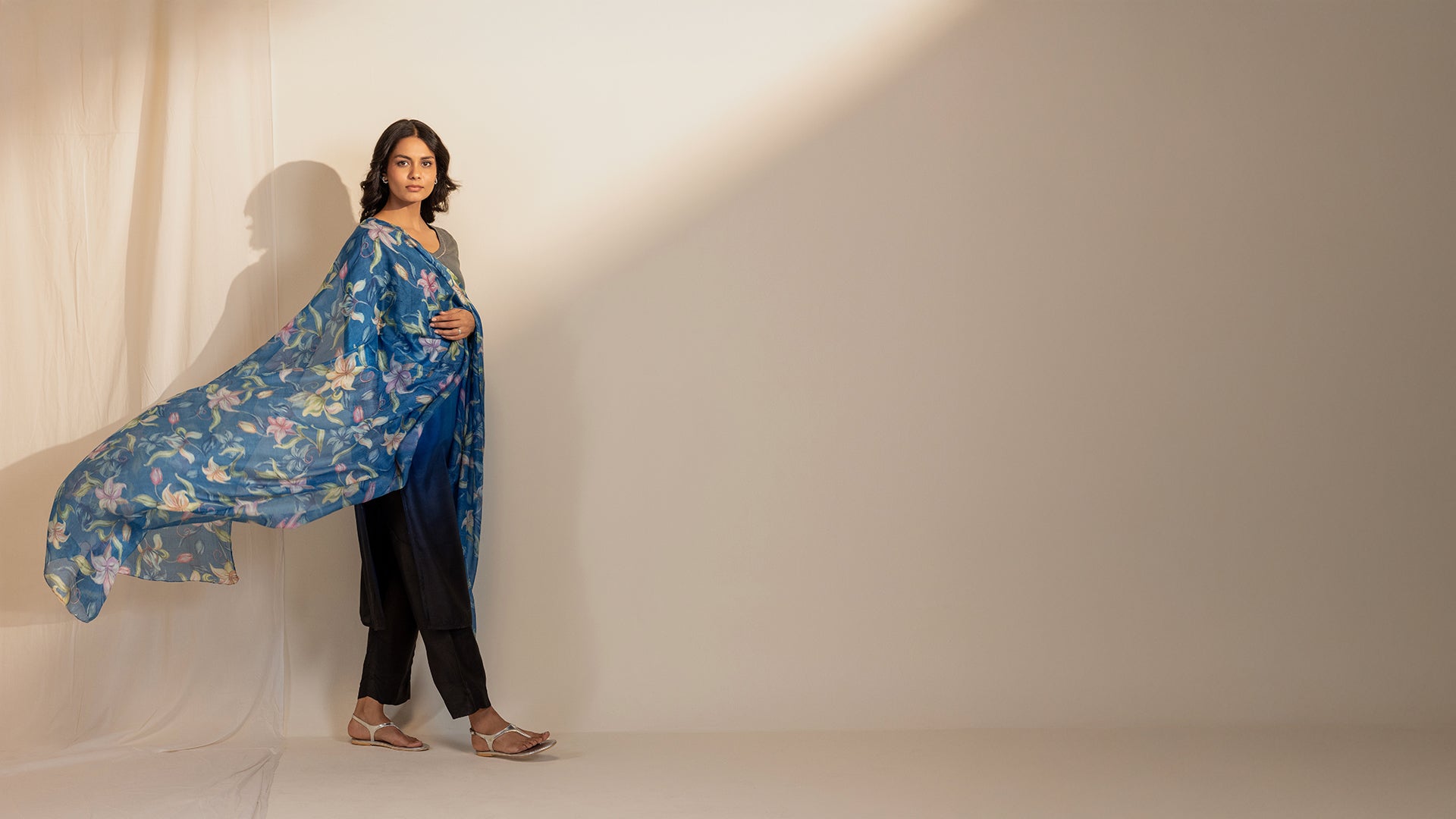 This enchanting organza dupatta showcases a stunning floral print, exuding grace and elegance. Perfect for elevating any ensemble.