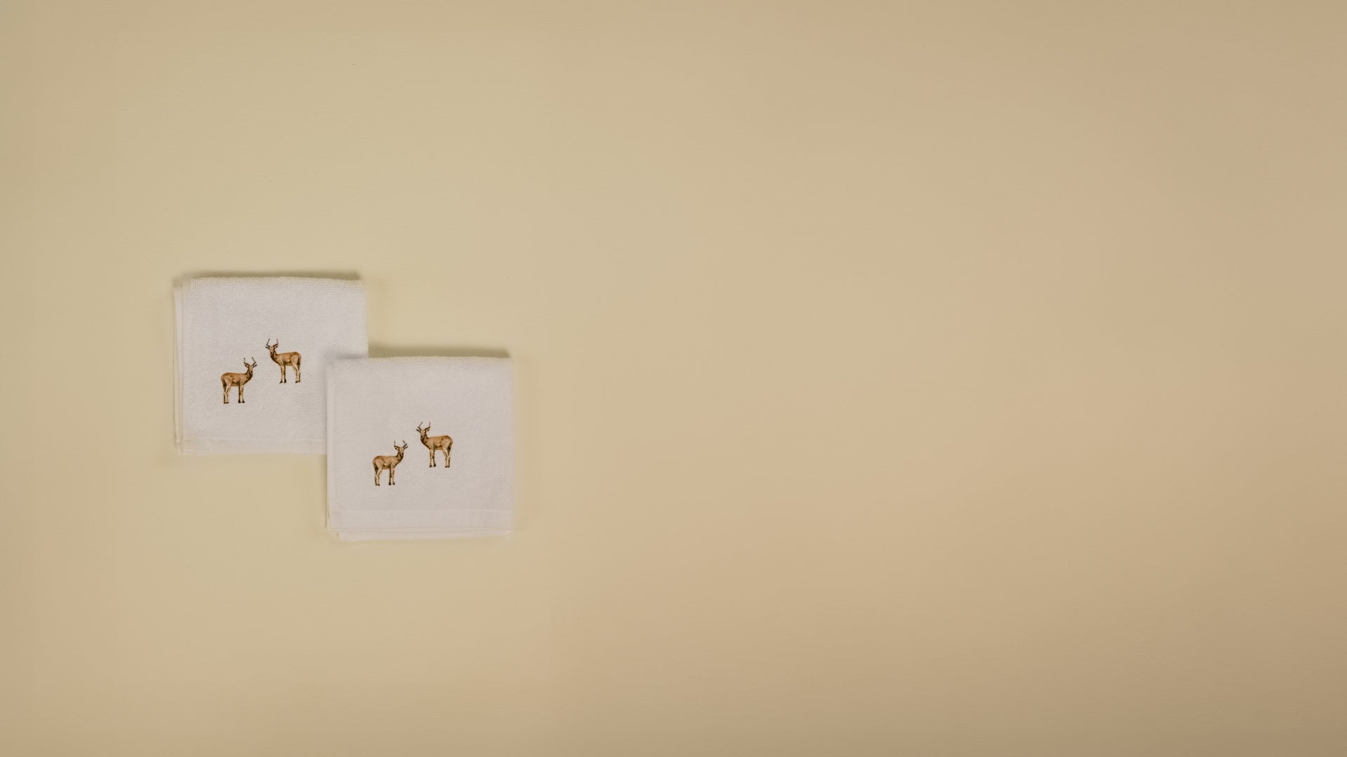 These face towels feature charming reedbuck motifs, digitally printed and appliquéd for a unique look. Made from 100% natural cotton, they provide both softness and absorbency, making them a perfect addition to your bathroom.