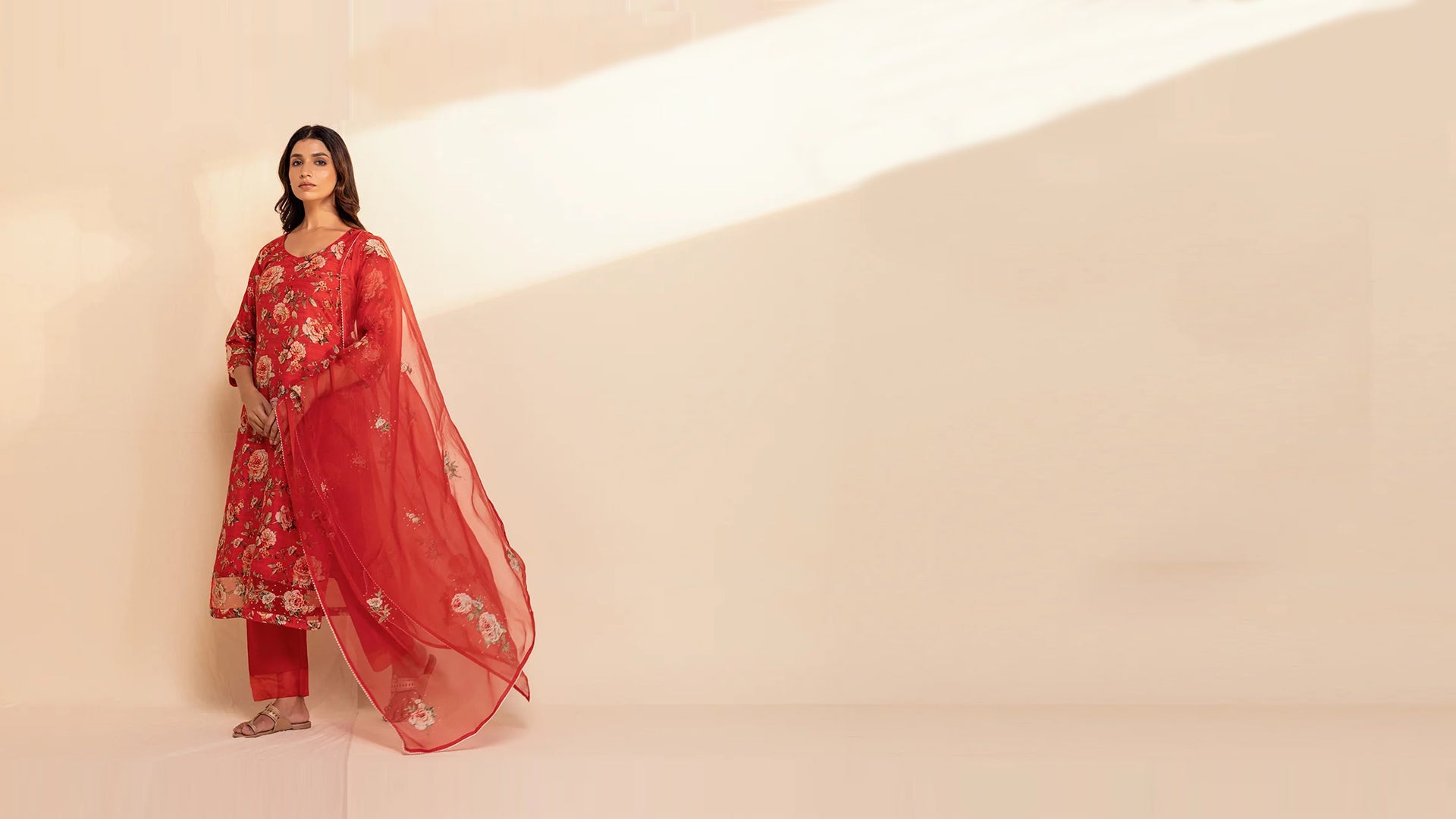 This exquisite organza dupatta is adorned with methodically spaced rose appliqués and delicate embroidery, exuding timeless charm. Finished with a scalloped lace edging, it adds an elegant touch to any ensemble.