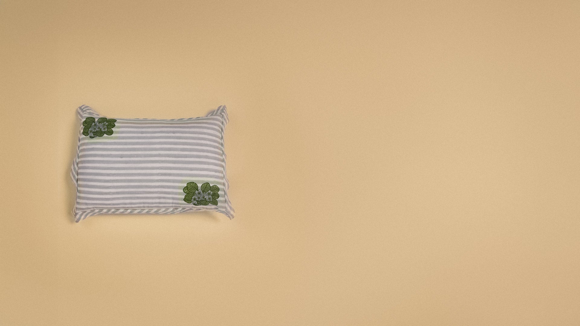 The Suvasa Botanicals Pillow Covers match the quilt, featuring hand-block printed hydrangeas on blue stripes. The back showcases a simple blue stripe pattern, offering a versatile design. Sold as a set of two, these covers come without fillers, which can be purchased separately.