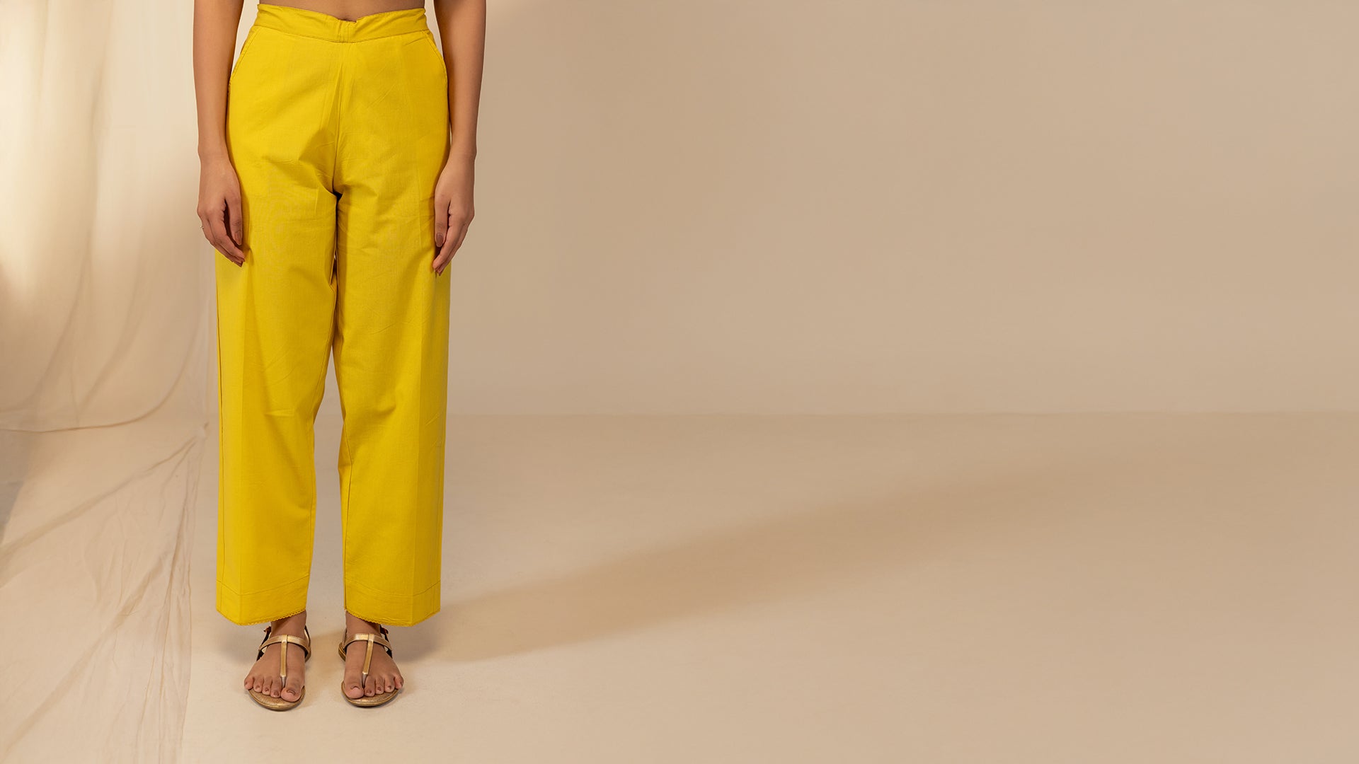 The Artisans Gold Cotton Straight Pant