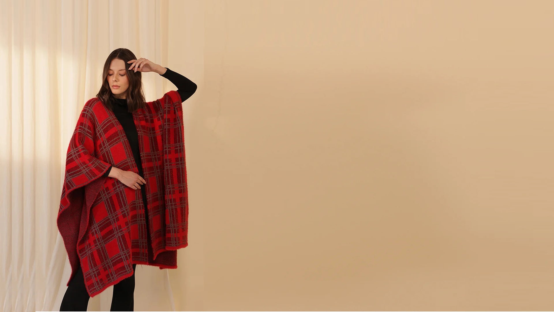 Woolen Reversible Check Cape Crimson