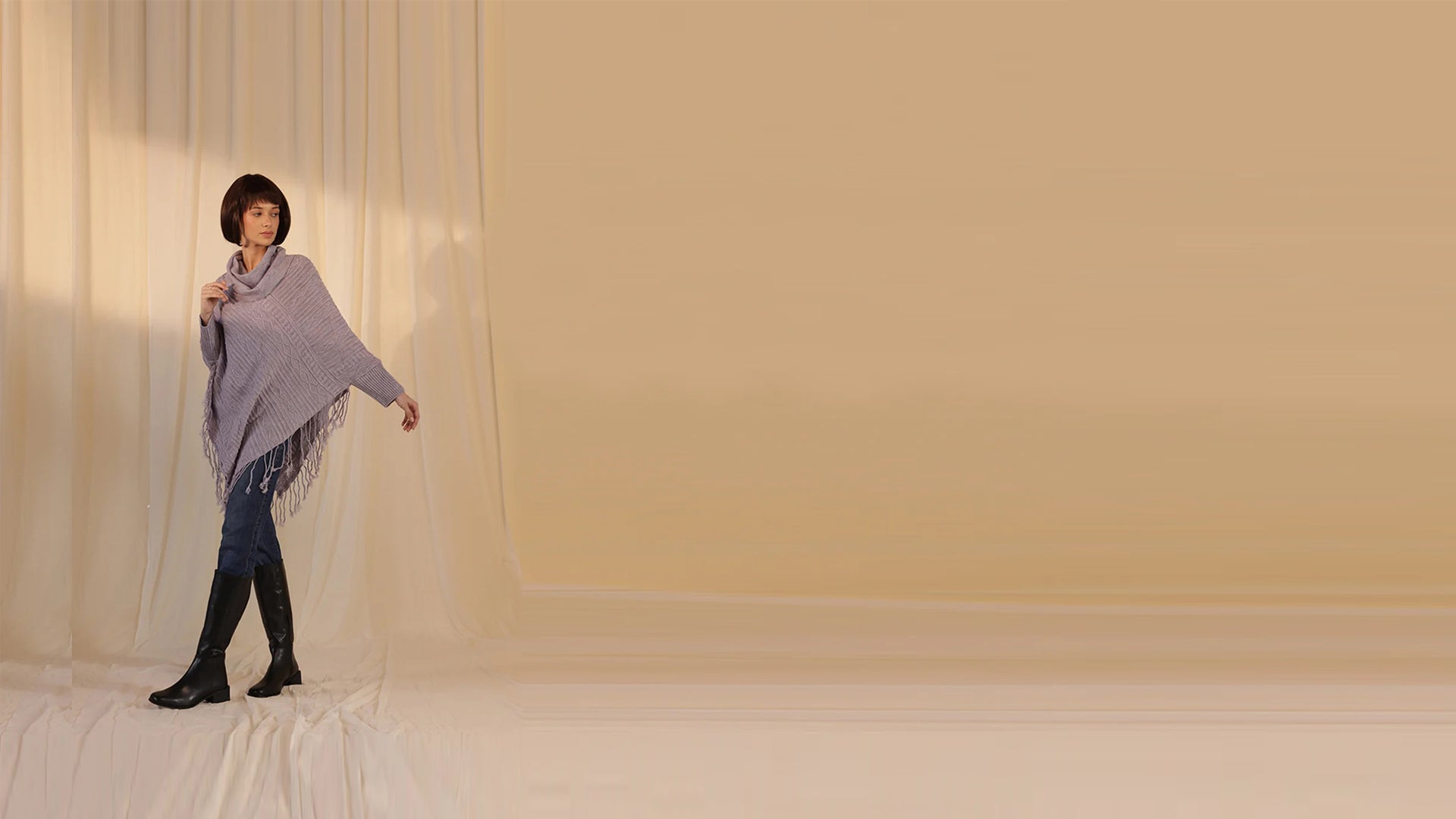 Woollen Cowl Neck Poncho - Lilac