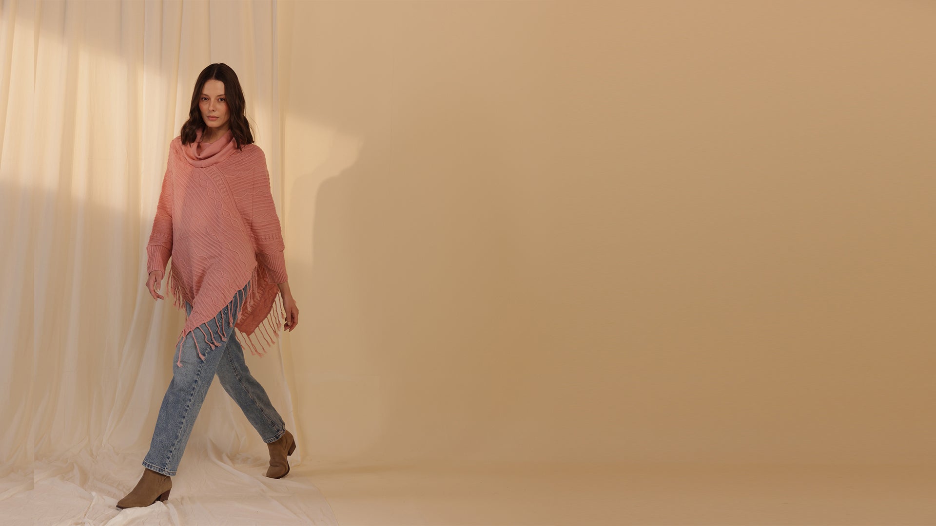 Woolen Cowl Neck Poncho - Rose