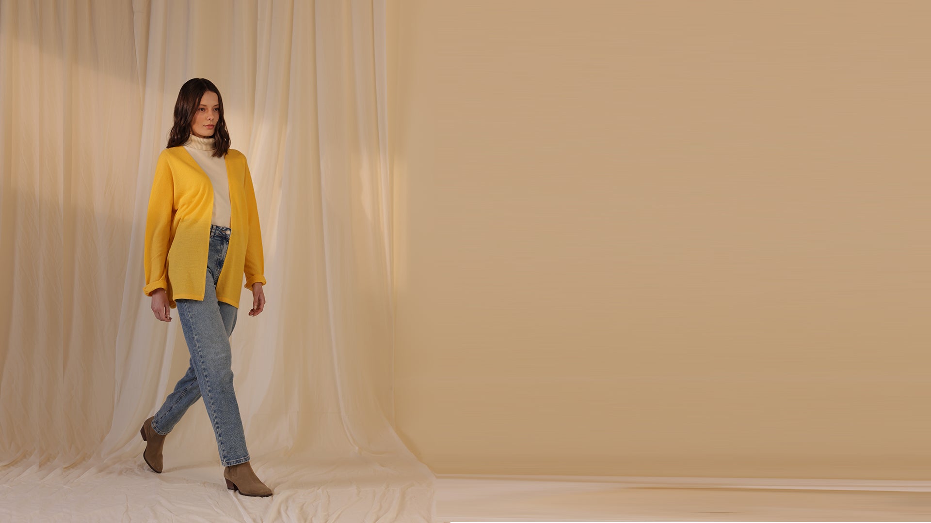 This full-sleeved knitted shrug, crafted in vibrant solid colors, features a loose fit and mesh knit design, making it a breathable and stylish layering option. The gathered detail at the sleeve cuffs adds a touch of charm to its relaxed silhouette.