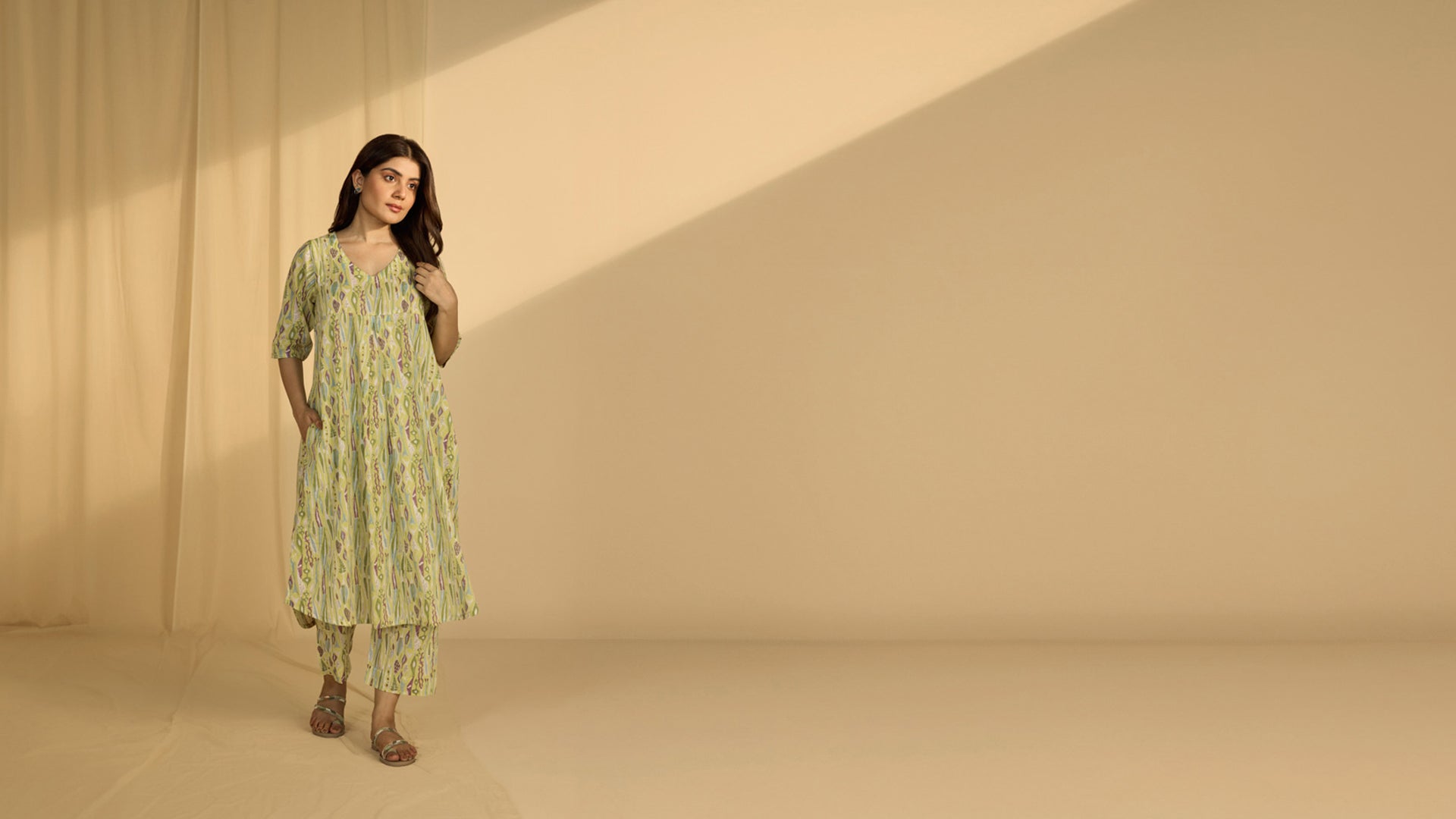 Experience the creativity of our designers with the Yellow Sketch Voile Kurta. This airy and lightweight voile kurta features a unique sketch pattern, perfect for adding a playful touch to your wardrobe.